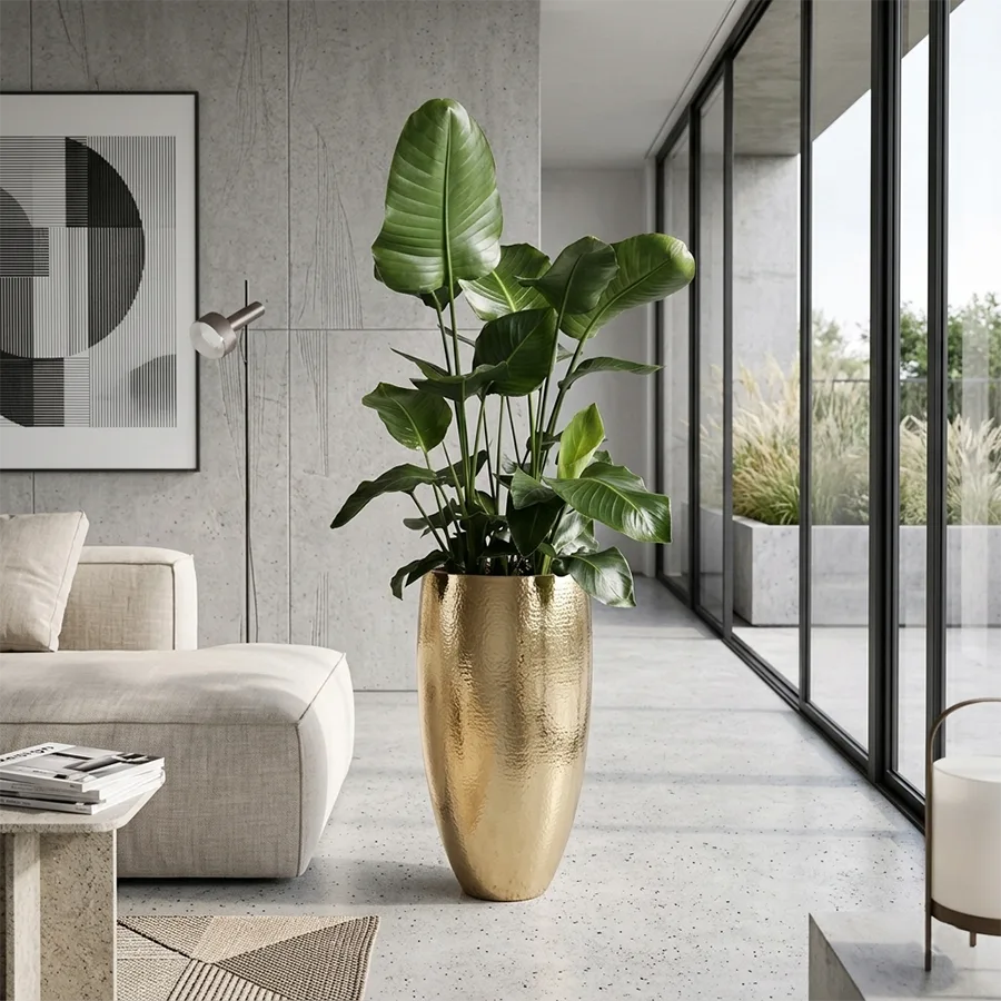 Magas kaspó Selena gold virágtartó elegáns és modern választás mindazok számára, akik luxus hatású dekoratív hangsúlyt szeretnének adni a térnek. Karcsú, magas formájával és kifinomult arany színével rendkívül exkluzív megjelenést nyújt, ugyanakkor kellően semleges ahhoz, hogy különböző lakberendezési stílusokhoz is szépen illeszkedjen. Ideális modern nappalikba, előszobákba, hálószobákba, szállodai enteriőrökbe, recepciókra, üzleti helyiségekbe vagy más beltéri sarkokba, ahol rendezett és vizuálisan kifinomult összhatást szeretne kialakítani.